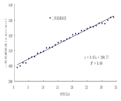 圖a RR-7330 測(cè)量系統(tǒng)測(cè)量閉路箱內(nèi)CO2累積過(guò)程及線性關(guān)系(中國(guó)農(nóng)業(yè)大學(xué),韓廣魯,2010)